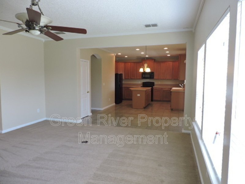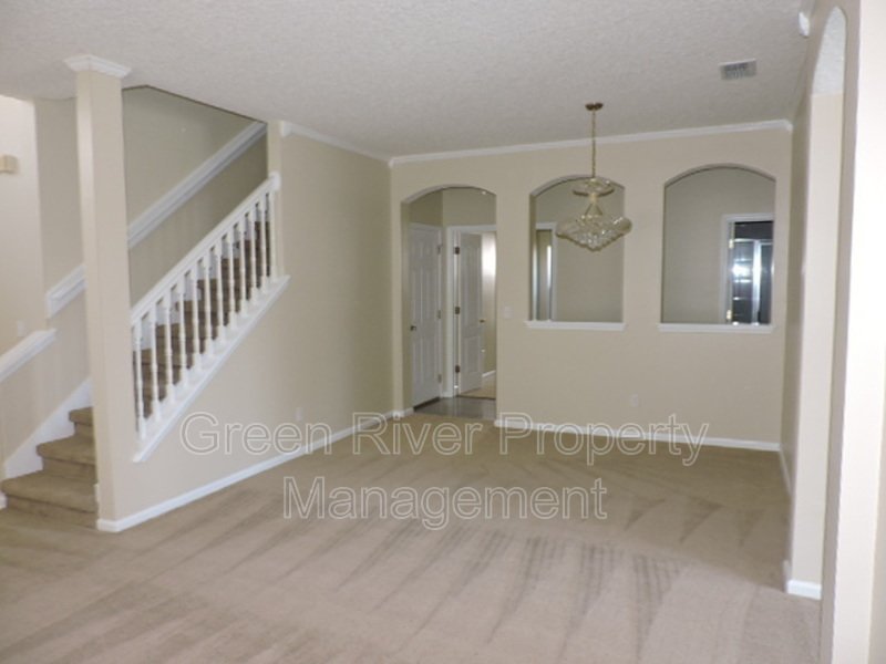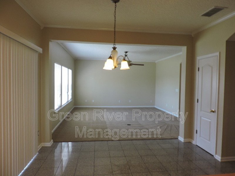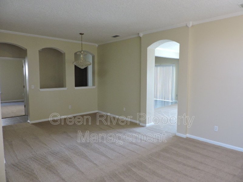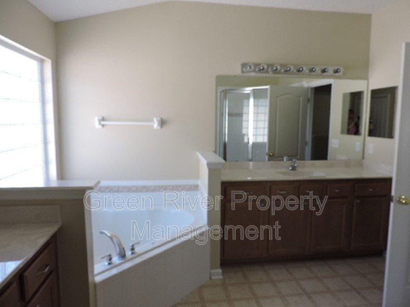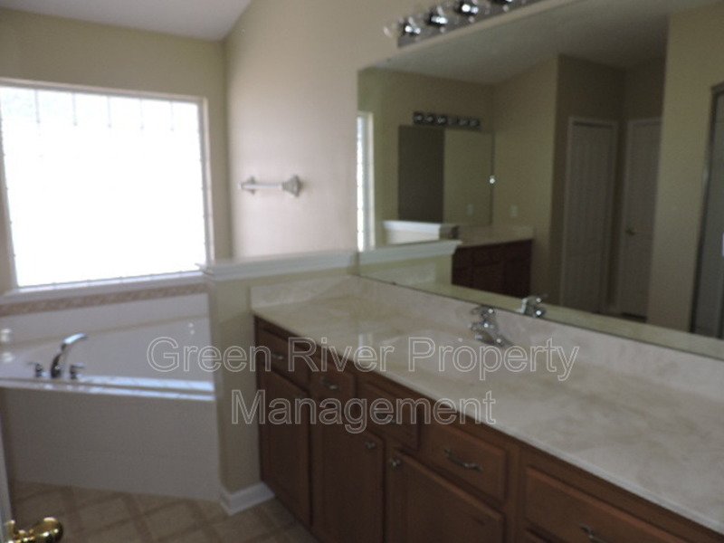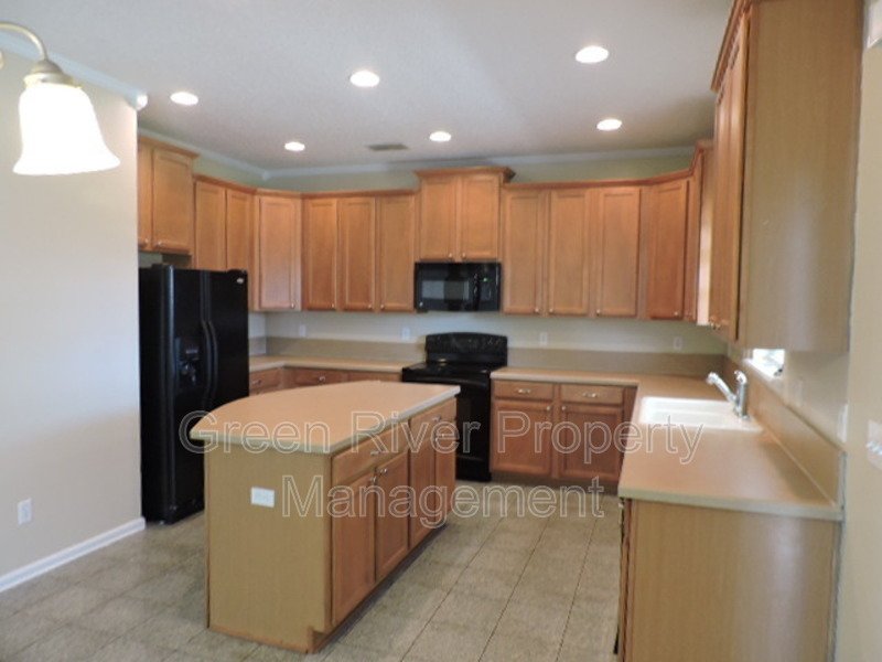 AVAILABLE: March 14th!! As you enter the home through the double doors, the entryway with a high ceiling opens to a large combination dining room living room. The open kitchen has granite tile floors, extra high cabinets, and a food prep island. The granite floors extend to the breakfast area, with a sliding glass door that opens to the covered patio. The family room adjoins the kitchen area. There is a bedroom downstairs that could double as an office. There is a full bath on the first floor. Upstairs you will find a spacious master suite with entry hall, large walk-in closet and master bath with garden tub, separate shower, double vanities and private room with toilet. There is a loft that opens to the entryway below and 3 more bedrooms. The laundry room hook-ups are located upstairs, central to the bedrooms. The 3-car garage has an additional storage closet. This great home has all of the Oakleaf amenities. This home is waiting for you. At a minimum, credit score(s) must be a combined 500. Gross Income must be 3 x the monthly rent. Dog under 25lbs welcomed.