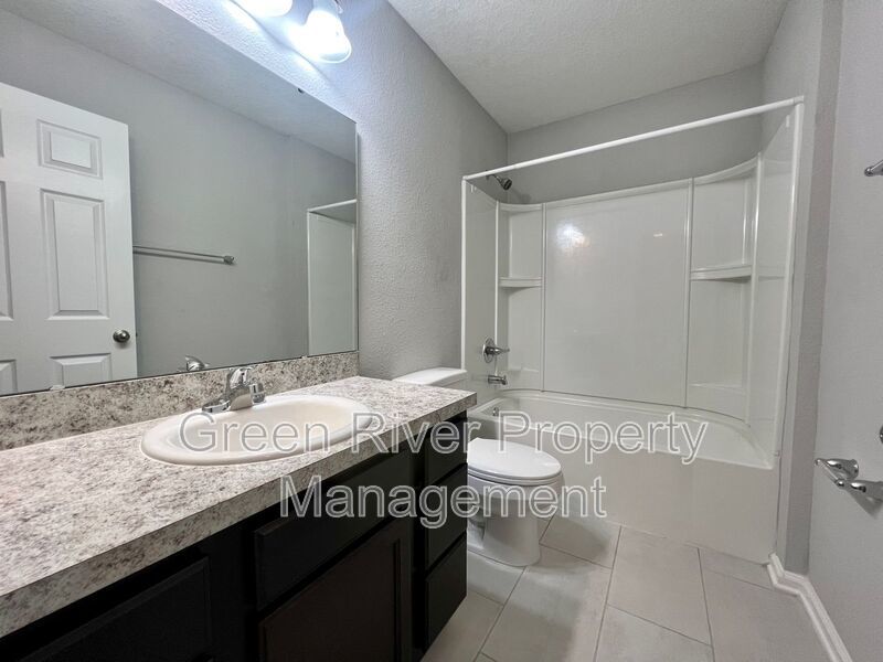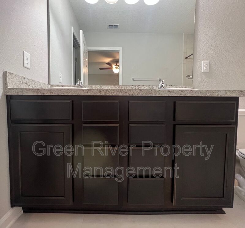 Tons of natural light from the glass sliders that lead to the fenced in yard conveniently located off the family room.  Upstairs you will find your 3 bedrooms and 2 bathrooms, with upgraded tile, along with washer and dryer hookups.   Your master suite is complete with a large walk in closet and ensuite dual vanity bathroom.  Call today and schedule a showing! At a minimum, credit score(s) must be a combined 500. Gross Income must be 3 x the monthly rent.