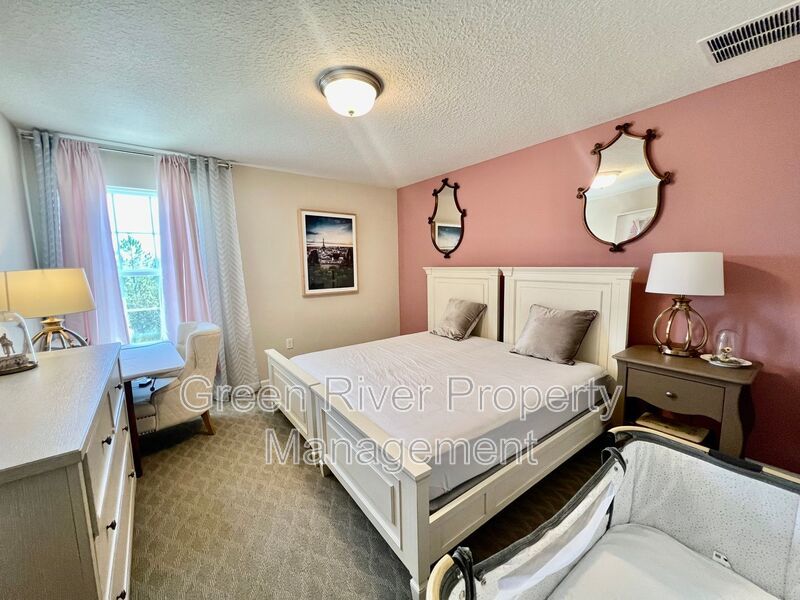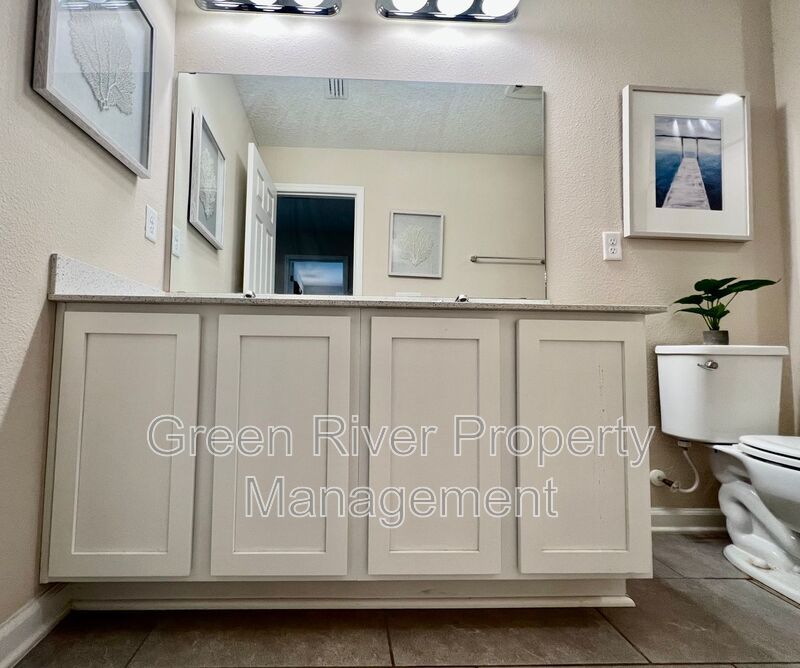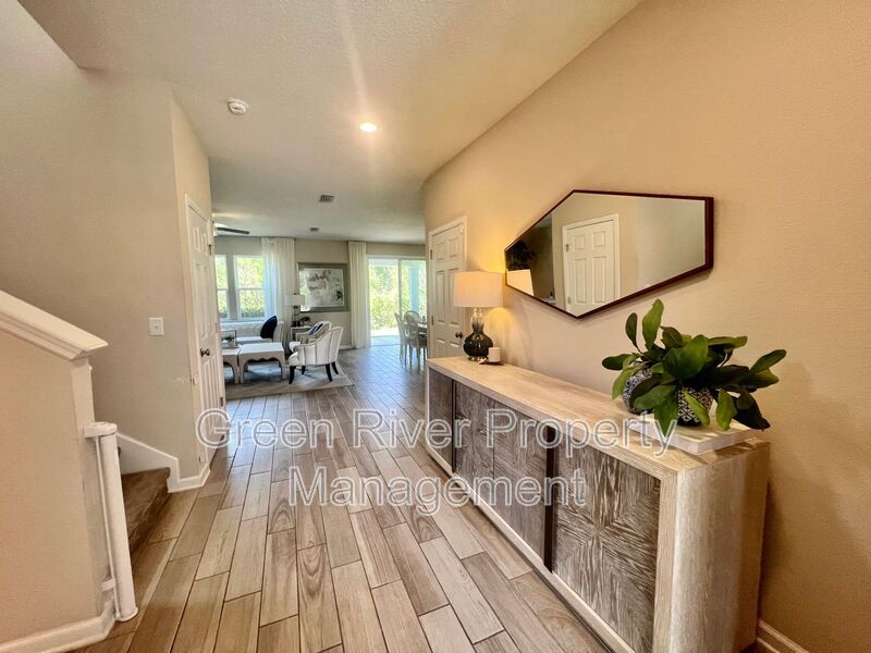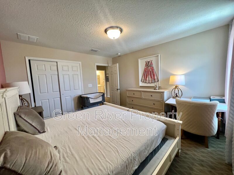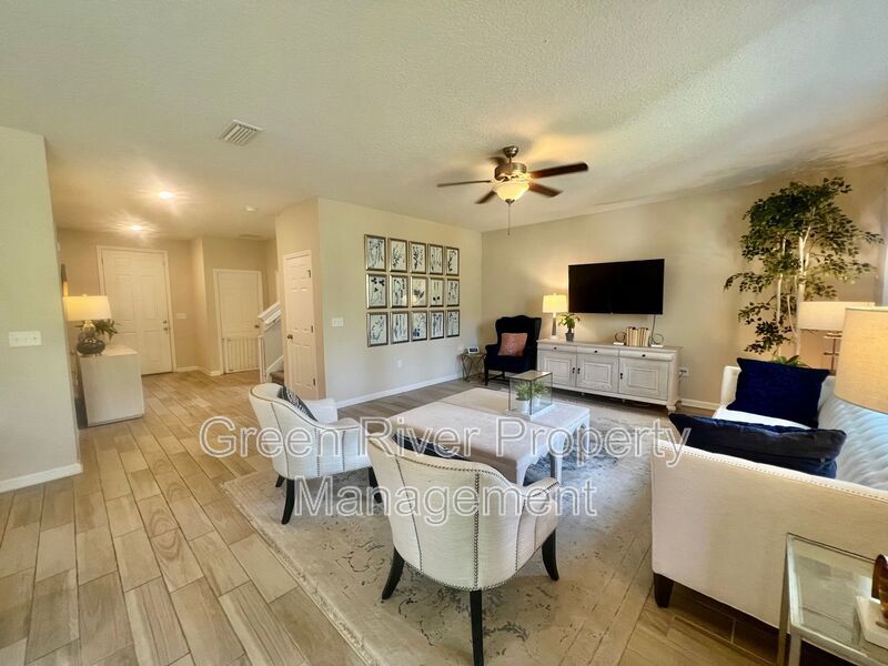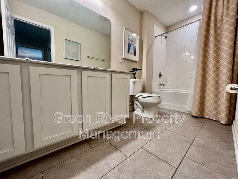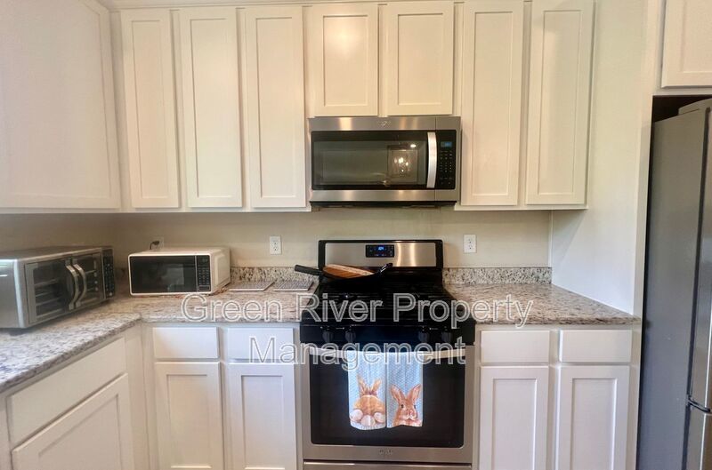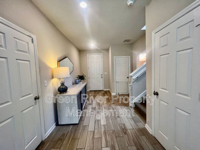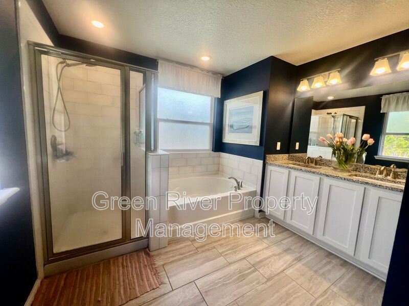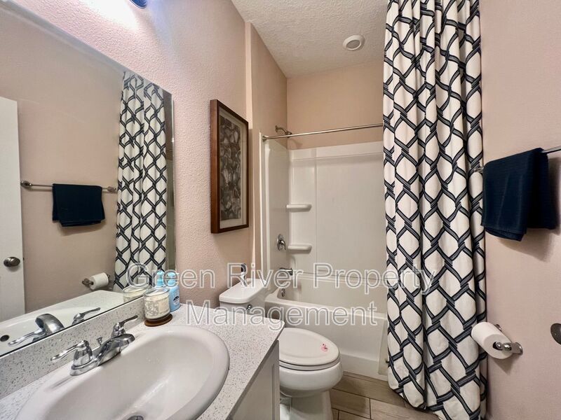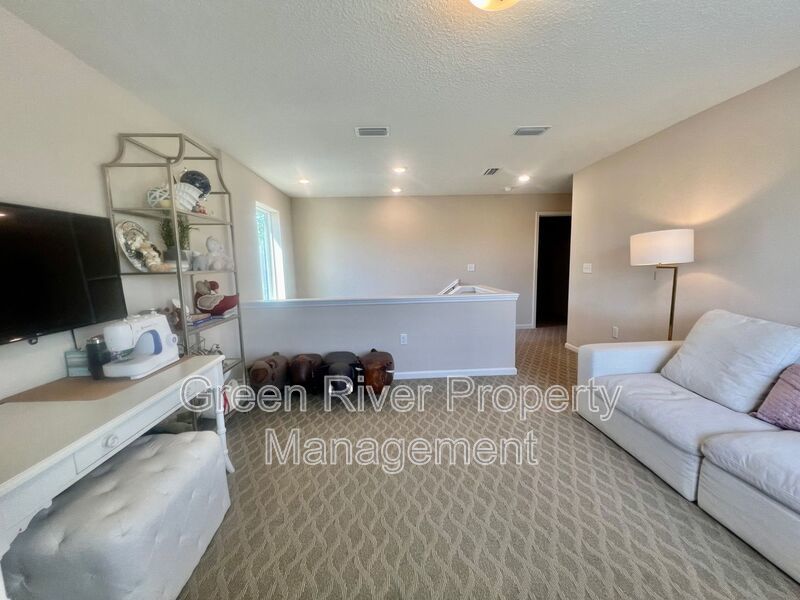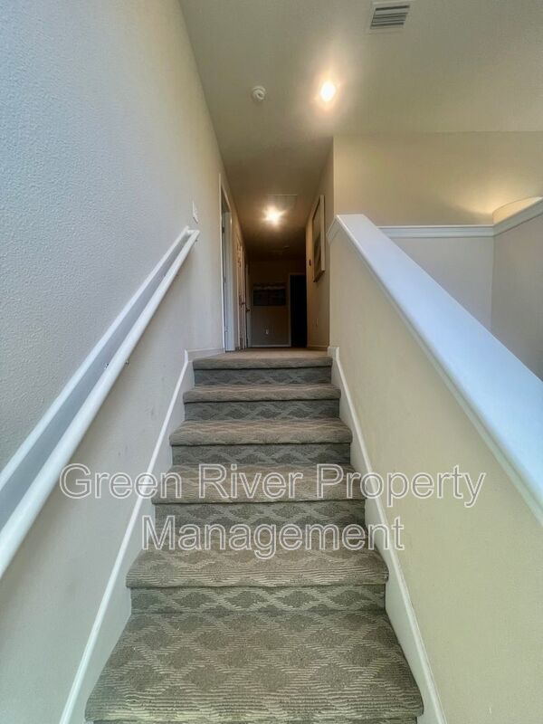 Available: NOW! 1 small pet 25lbs and under allowed. You will love this former model home! All the upgrades you are looking for. 1 bedroom downstairs and full bathroom. Open concept family room, dining and kitchen. Sliders open to a manicured backyard. Tile floors that look like wood throughout the ground floor. Carpet in bedrooms and stairs. Kitchen has Stainless Steel appliances, nice size island, white cabinets. Gas in the home. Upstairs has a loft and 3 bedrooms plus 2 full baths. Master bedroom is large, with walk in closet and bathroom has separate shower, soaking tub and 2 sinks. The hallway bathroom has lots of counter space with 2 sinks and a combo shower/tub. The laundry room is on the 2nd floor. washer and dryer will be provided and is "As Is". Please note the W/D pictured is not the one staying. Owner will place a set after moving. Please note that a minimum combined credit score of 500 is required, and the gross income must be at least three times the monthly rent.