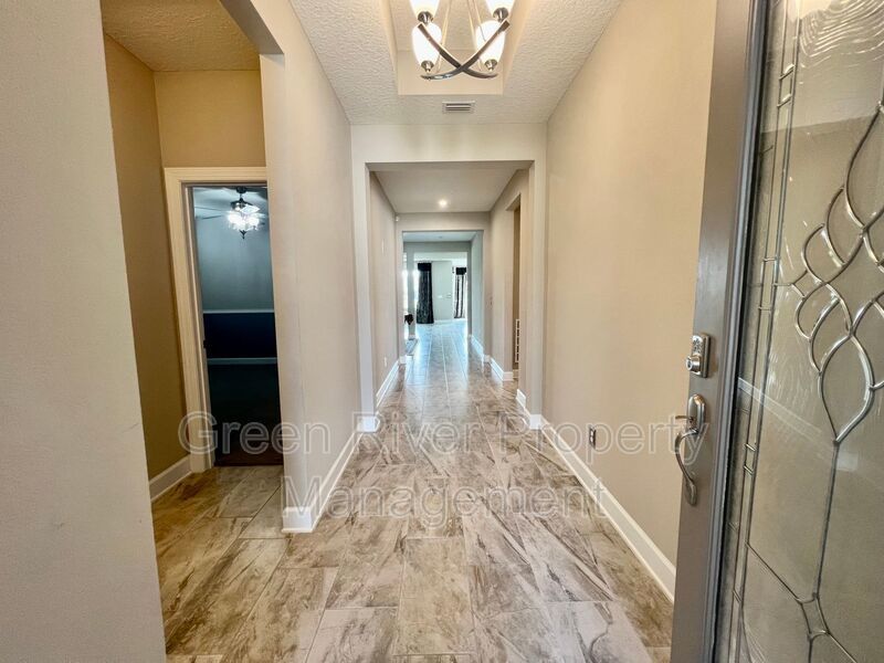 Available: August 12th! This stunning home was built by Drees and will amaze you as soon as you step inside; with upgraded porcelain tile, quartz countertops in your chefs kitchen, custom lighting and smart home features all throughout the home. The spacious master suite will have you feeling nothing but relaxed with large windows overlooking the view. The master bathroom is a stunner! Large shower with 3 shower heads. Bedroom has a very generous walk-in closet. Carpet in the home has very soft padding and in brand new condition. Leaving 3 barstools for tenant to use. There are built in surround sound speakers and an extended back patio with plenty of room for all your guests. Washer and Dryer are "As Is". Oakleaf Plantation amenities included. Cameras on property and will be disconnected- available for tenant use. Owner is keeping 1 small hall closet locked for owner items. At a minimum, credit score(s) must be a combined 500. Gross Income must be 3 x the monthly rent. PETS WELCOMED!!