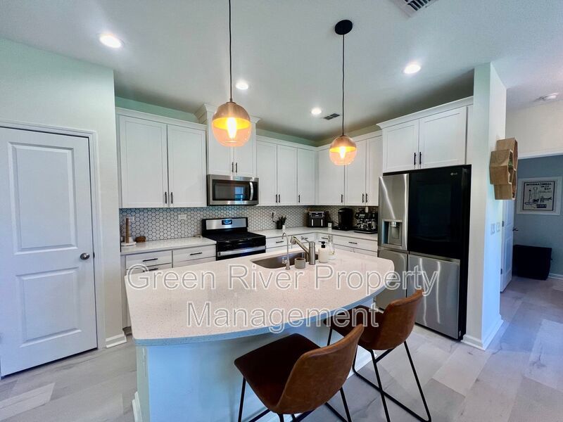 Available August 1st! Pets under 25lbs are welcome. This beautiful townhome is an end unit. 3 bedroom, 2 bath and 2 car garage. Barely lived in! Looks brand new and has all the upgrades everyone loves. Tons of natural light. Amenities in the community are free to you and your family! Walking in the home you will see an open concept floorpan. The family room has electronic shades for privacy. Open them on a beautiful day and enjoy the screened in back porch with tile floors over looking the preserve. Laundry room has a washer and gas dryer (as-is) for your use, with extra storage space above. Bedrooms are a generous size. Floors are a luxury vinyl plank. The kitchen has a gas stove, white cabinets, SS appliances, large island with sink. Eat at the island or dining area large enough for a table with 4-6 chairs. The master bedroom and bath is beautifully finished. Bedroom has a large walk in closet with some organizers. 2 sinks in the bath, stand up shower. Home has a water softener and reverse osmosis. Tenant will need to add salt periodically- owner will leave details. St Johns county schools including Beachside High School. Publix is minutes away. Easy access to shopping, restaurants, 95 and Town Center. Call today! At a minimum, the credit score(s) must be a combined 500. The Gross Income must be 3 x the monthly rent.