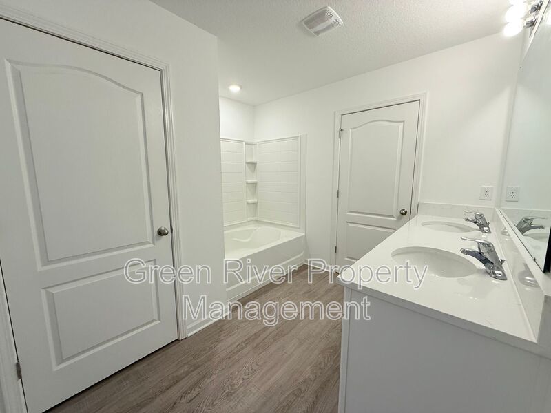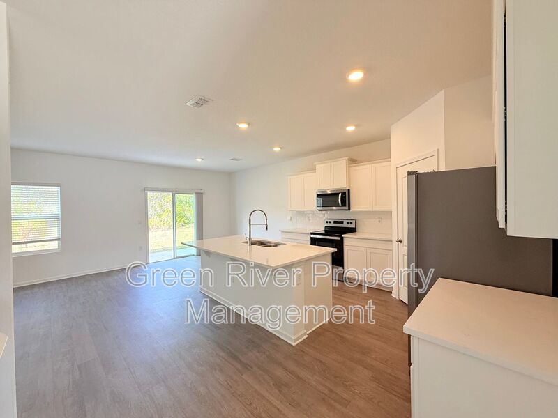 Available: October 13th! This spacious 5-bedroom, 3-bath home with a loft offers nearly 2,500 sq. ft. of living space, perfectly designed for families, entertaining, and yes—even your furry friend (1 pet allowed, up to 50 lbs!). Nestled on a quiet cul-de-sac, there’s room for everyone—kids, friends, and pets included. Step inside and fall in love with the modern kitchen featuring quartz countertops, a large island, stainless steel appliances, and plenty of room to cook, gather, and celebrate. Luxury vinyl plank flooring runs throughout, adding both style and durability. Downstairs, you’ll find 2 bedrooms and a full bath—perfect for guests or a home office setup. Upstairs, the master suite, loft, laundry (washer/dryer included as-is), and 3 additional bedrooms with a hall bath make everyday living a breeze. The large backyard is fully fenced, offering the perfect spot for outdoor play and relaxation. But the perks don’t stop at your front door—Cross Creek has it all: a sparkling pool, clubhouse, gym, tot lot, splash area, pickleball courts, and even RV/boat storage (for an additional fee). At a minimum, credit score(s) must be a combined 500. Gross Income must be 3 x the monthly rent.