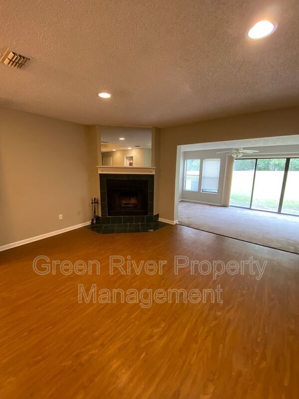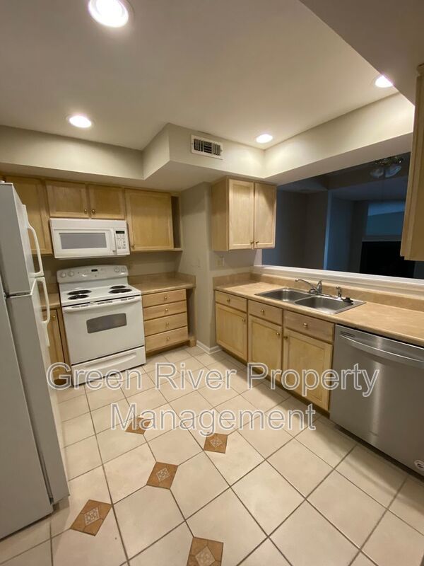Available: NOW! Step into this surprisingly spacious 2-bedroom, 2.5-bath condo tucked inside the coveted gated community of The Ravines. Warm wall tones, light kitchen cabinetry, and a blend of wood flooring and carpet set a welcoming, grounded vibe. From the kitchen’s breakfast bar, you can look straight through the living area to the triple-wide sliding doors in the family room, filling the space with natural light and giving the entire home an open, easy flow. The living room includes a wood‑burning fireplace and ceiling fans throughout keep things comfortable. The large primary bedroom features its own attached bathroom and a generous closet. Washer and dryer connections are provided, along with the convenience of a one‑car garage. Please note that the association requires approval and a $60 application fee, and real estate agents must present a business card to the gate attendant for entry. Per the HOA, no dogs over 25 pounds are allowed, and no cats are permitted. Please note that a minimum combined credit score of 500 is required, and the gross income must be at least three times the monthly rent.